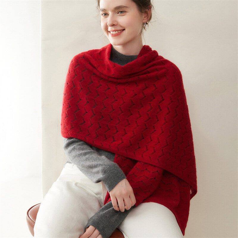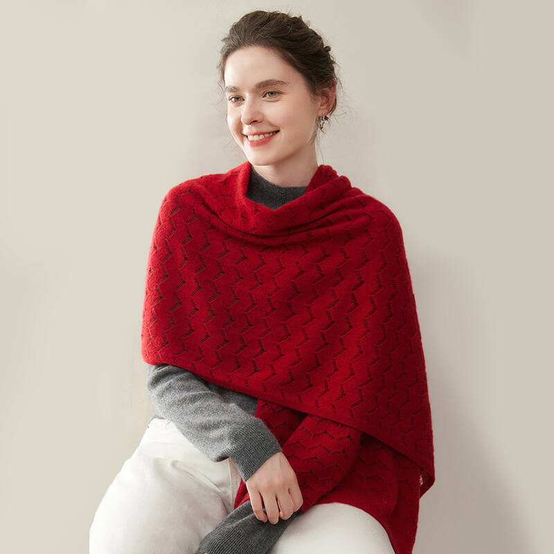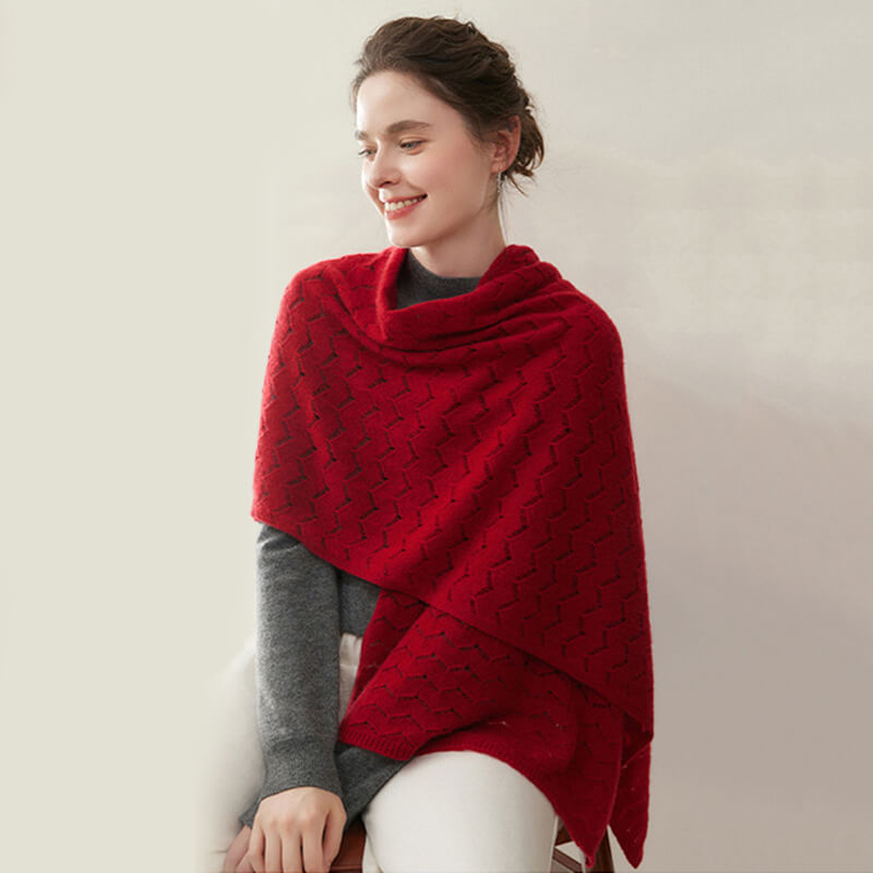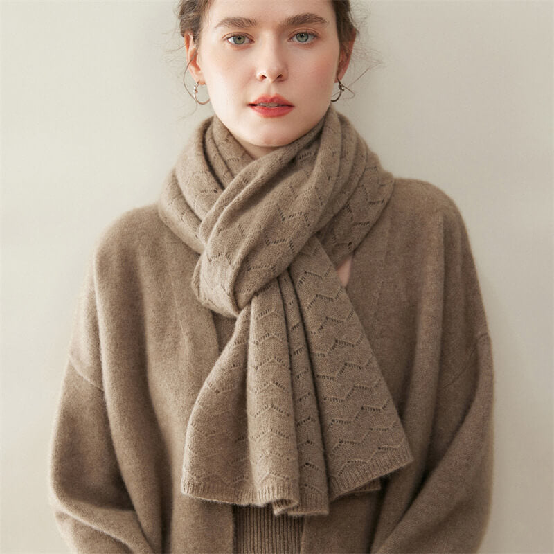 Women's Long Soft 100% Cashmere Scarf with Chevron Openwork Pattern CP049