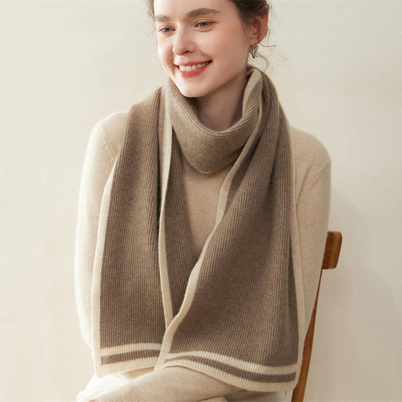 Women's Ribbed Striped Fashion 100% Cashmere Scarf