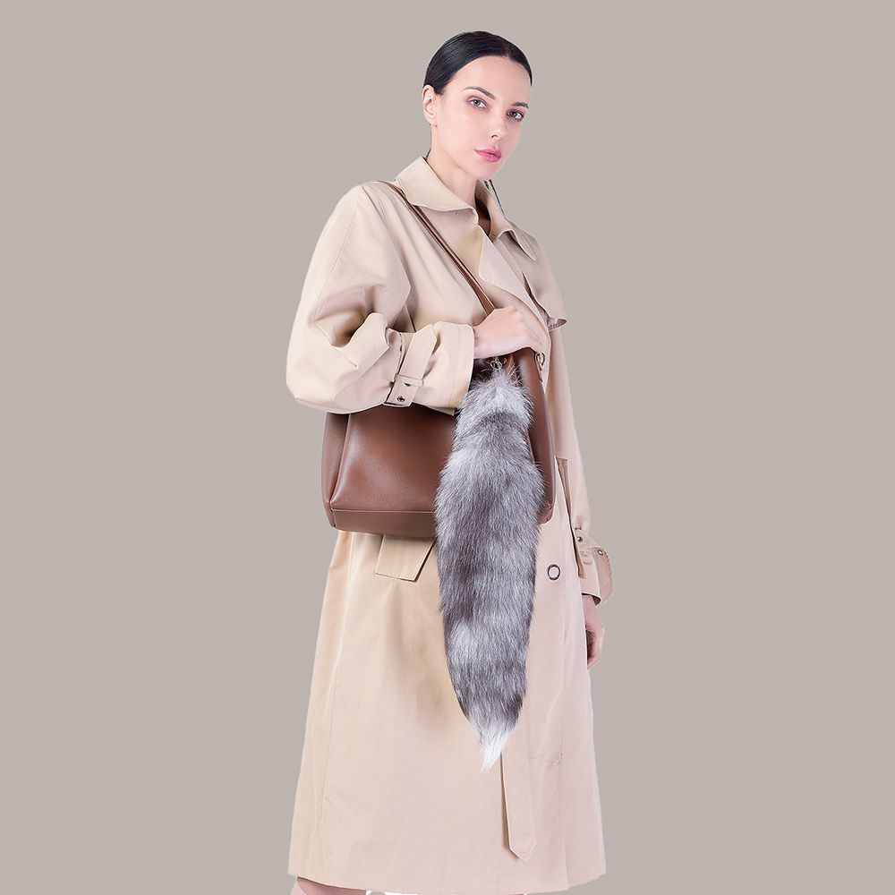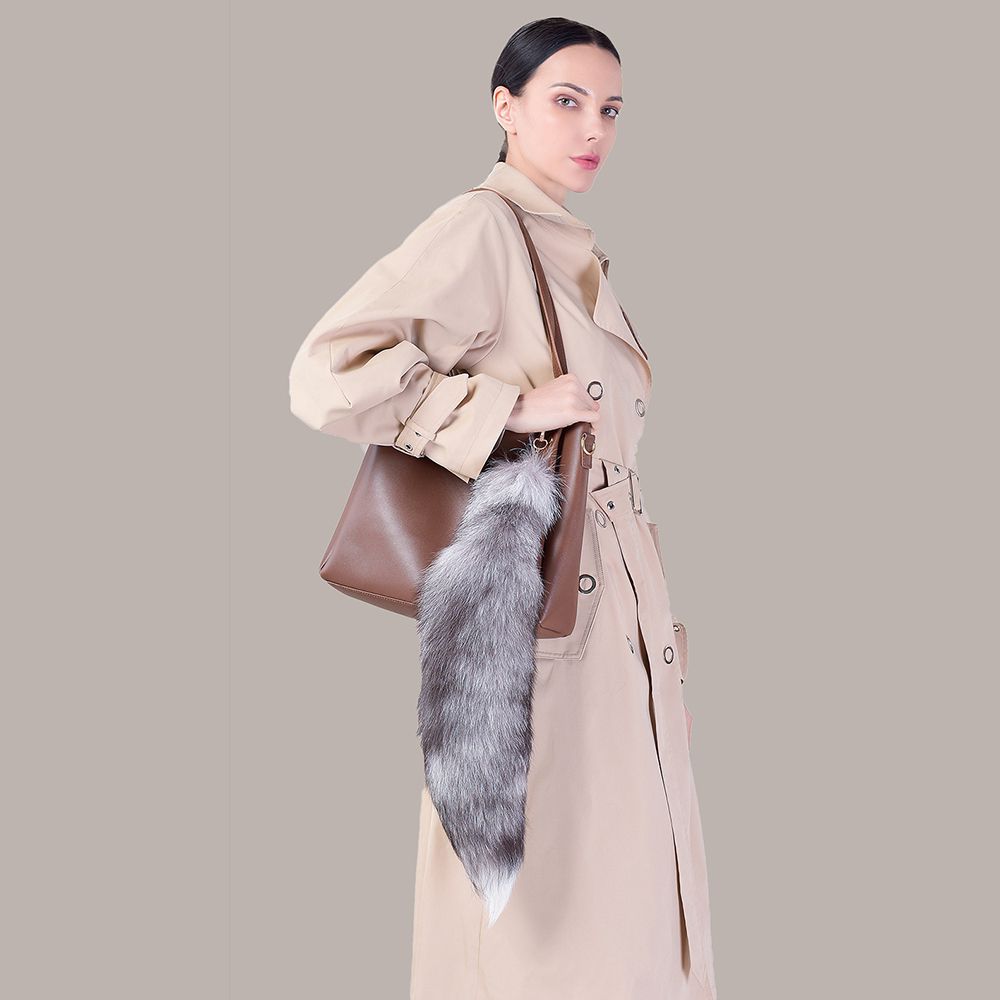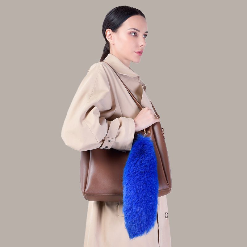 Undyed Natural Real Fox Fur Tail Keychain Oversized Bag Charm Genuine Long Fur Key Ring for Handbag Purse Tote
