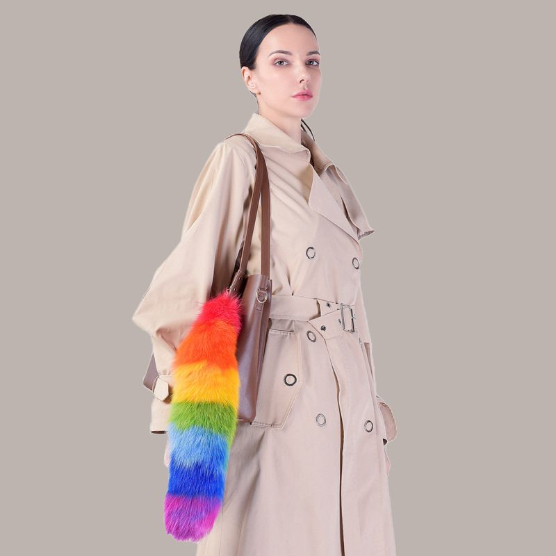 Dyed Real Fox Fur Tail Keychain Oversized Bag Charm Genuine Long Fur Key Ring for Handbag Purse Tote