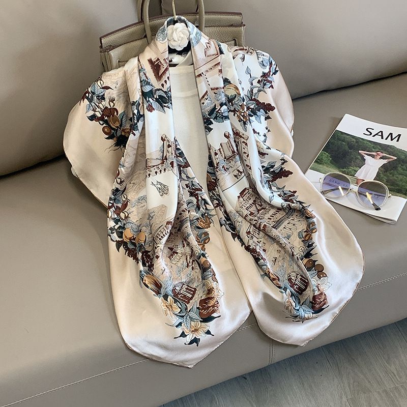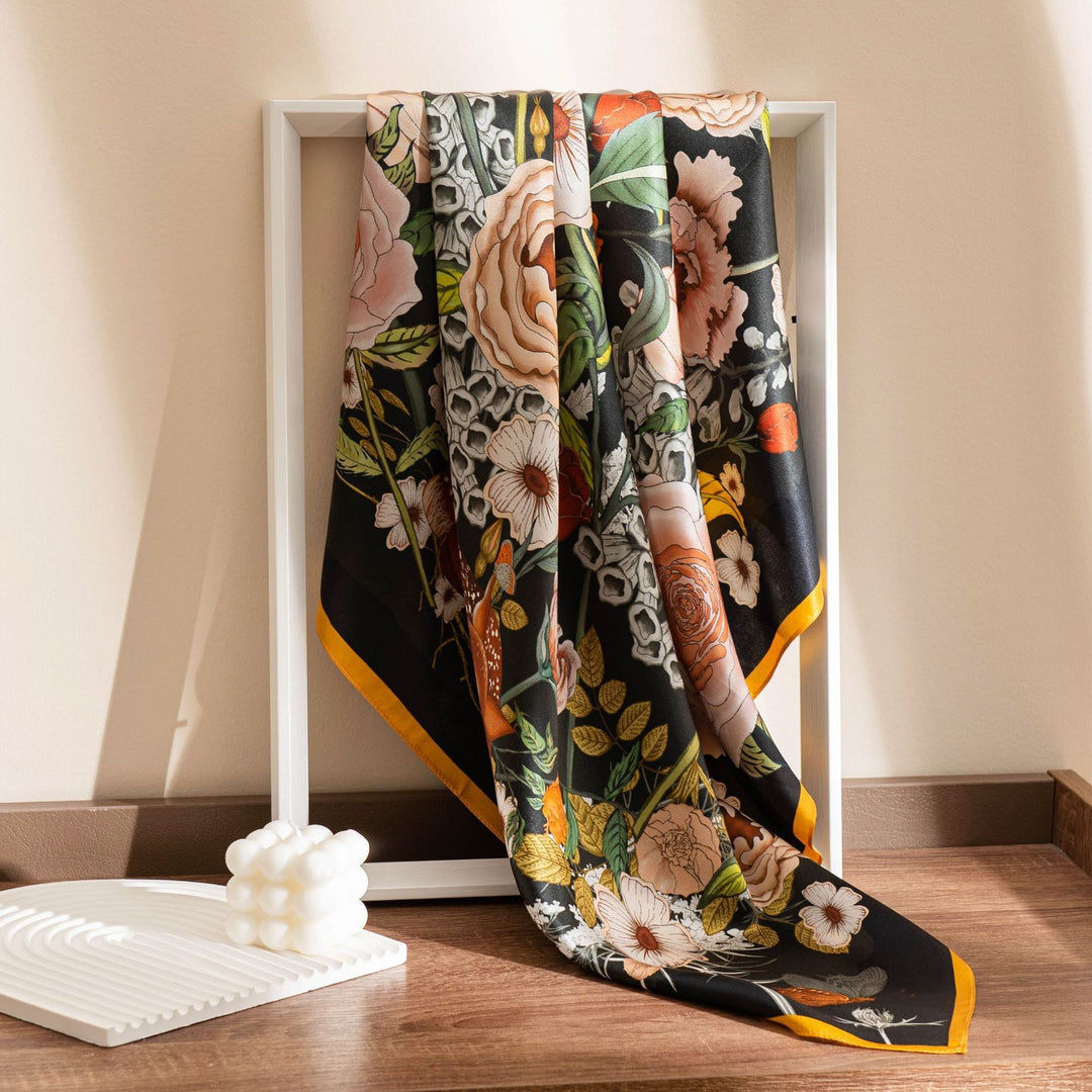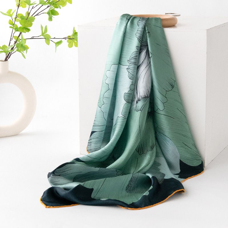 35" x 35" Floral Printed Large Silk Sqaure Scarf Women's Mulberry Silk Head Wrap