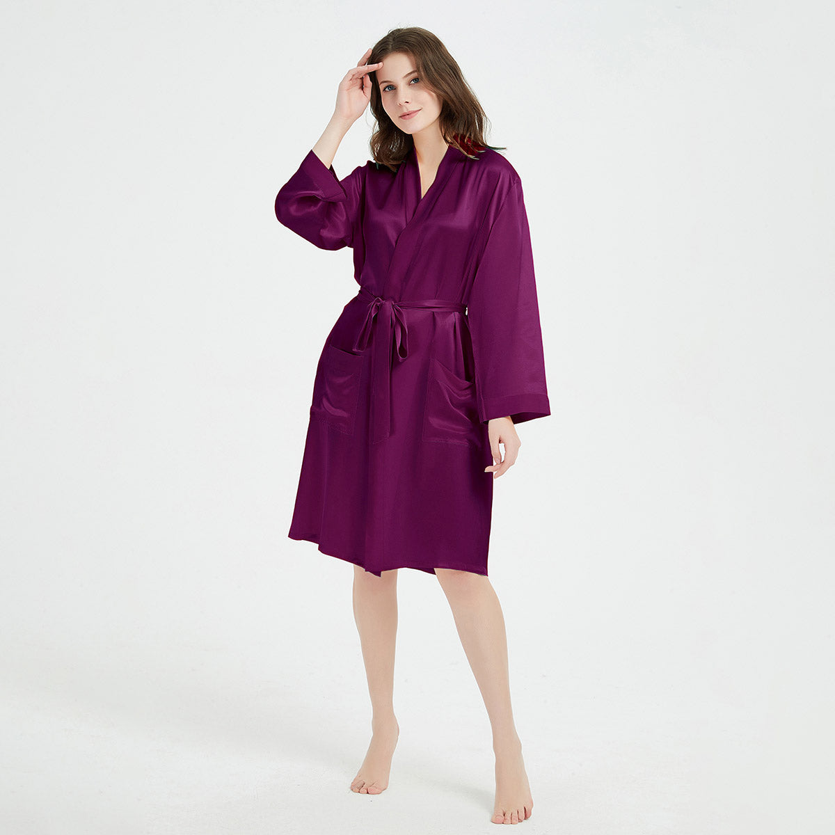 This stand-up-collar silk robe is simple, elegant and has a loose and comfortable tailoring. You’ll wake up smiling in these sweet and smooth womens silk dressing gown. They’re as bright and joyful as a sunny summer day, and comfy enough to slumber the night away. Pure silk and fluent cut add a darling touch.